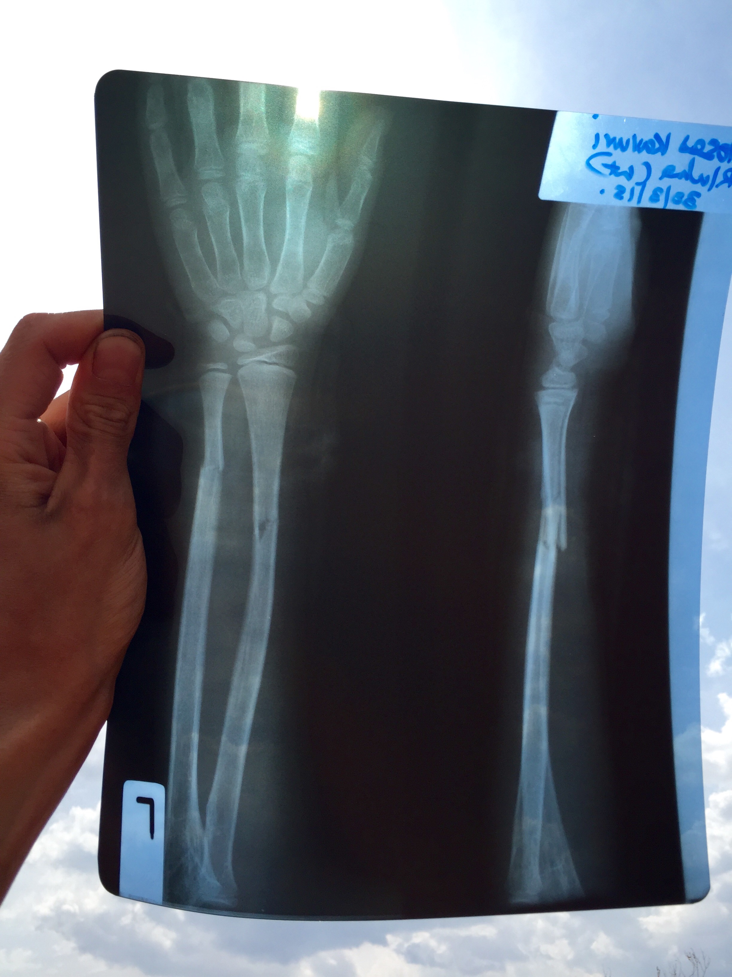 We took the X-ray to another hospital where they could actually do something about it, and after paying more and leaving to get some drugs and coming back and administering the pain drugs, a doctor studied the photo some more, decided whether or not they were qualified to do anything, and with a yank and a series of cracks and maybe one mild whimper and tear from the boy, the arm was wrapped and cast. Tough kid.